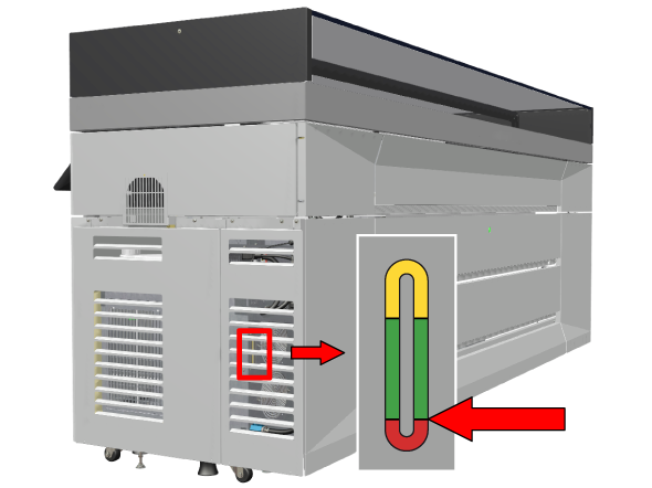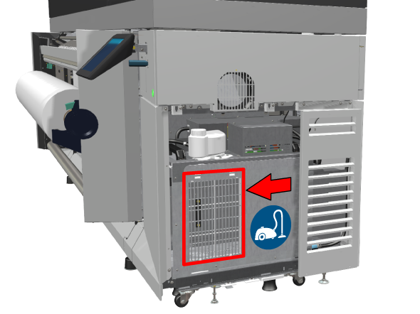 Javasolt, hogy havonta porszívózza ki a hűtőt, hogy a nyomtatót a legjobb állapotban tartsa. A hűtő porszívózása az időszakos karbantartás része, így a kezelőpanel egy figyelmeztetést ad, amikor ki kell porszívóznia a hűtőt. Mindig ellenőrizze a folyadékszintet, amikor a hűtőt porszívózza.