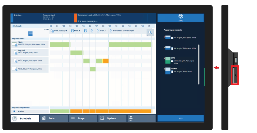 Put the printer in sleep mode. When the printer is ready, the sleep mode is entered immediately. When the printer is active, the sleep mode is entered as soon as all scheduled jobs are printed.
