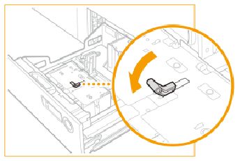 Faire glisser le guide papier avant et arrière contre la pile de supports et verrouiller le levier. |