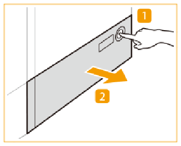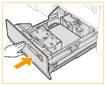 Fermer doucement le magasin papier jusqu'à ce qu'un clic indique qu'il est bien en place. Le dispositif de levage intérieur se soulève automatiquement et prépare le bac papier à l'impression. Lors de la fermeture du magasin papier, veiller à ne pas se faire pincer les doigts, ce qui pourrait provoquer des blessures corporelles. |