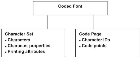 A character must be included in the specified character set and listed on the specified code page. A coded font couples a specific code page to a specific character set.