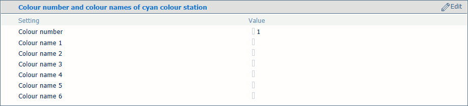 [Ciánkék színállomás színszámai és színnevei] A színállomásokhoz egyéni nevet vagy számot társíthat.
