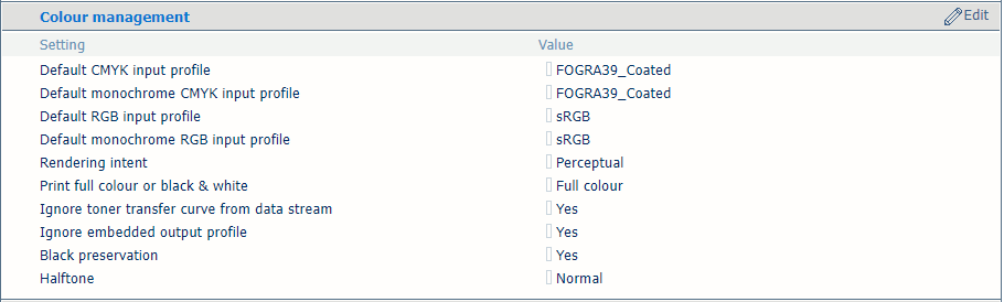 이 설정을 사용하여 RGB 또는 CMYK 내장 출력 프로파일을 무시할 수 있습니다. |