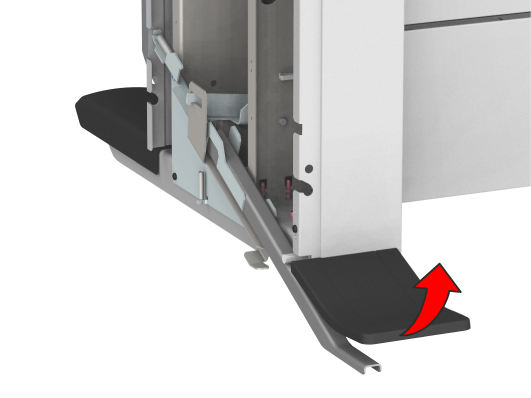 Si vous n'entendez pas de déclic, placez le pied sur celui de l'imprimante [1] et poussez en même temps contre l'imprimante jusqu'à ce que vous entendiez le déclic.
