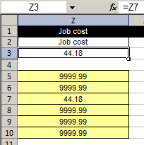 Recomenda-se a utilização da função IF para cada novo cálculo: =IF (teste_lógico, valor_se_for_verdadeiro, valor_se_for_falso ). Se o teste_lógico for verdadeiro, é calculado o custo do trabalho. No caso contrário, o cálculo de volve um valor predefinido. Neste exemplo: 9999.99.