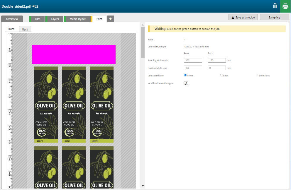 カットする前に画像後の余白を追加する場合、ジョブの後に [後端余白] を追加することができます。