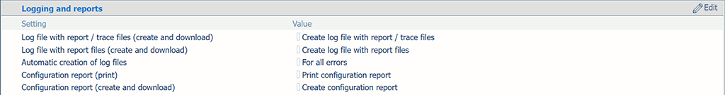 [Logging and reports] sectionClick the [Configuration report (create and download)] setting.