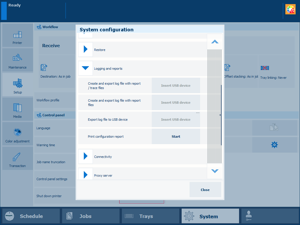 [Logging and reports] sectionIn the [Logging and reports] option group, click [Print configuration report].