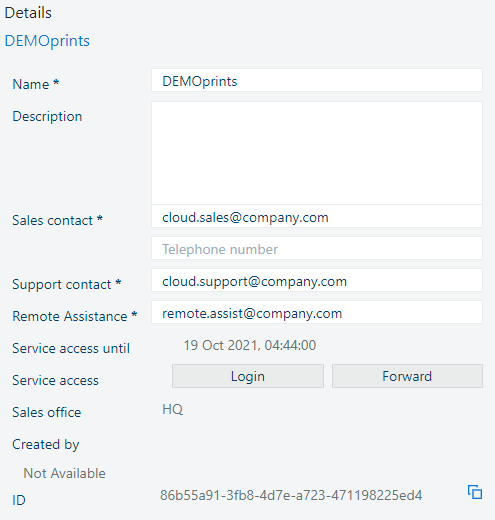 Klik op [Doorsturen] om iemand anders met de tenant te laten afhandelen. De applicatie zal een pop-up bericht tonen waarin om een e-mail adres wordt gevraagd. De beperking is nog steeds geldig: U moet het e-mailadres van een gebruiker met servicerechten geven.