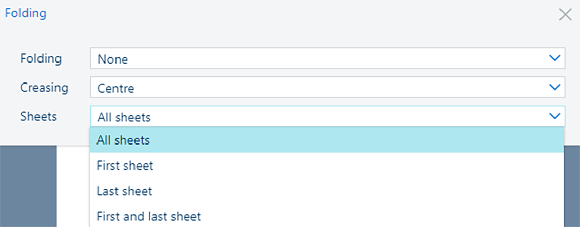 Параметр [Биговка] Используйте параметр [Листы], чтобы указать, для каких листов нужно выполнить биговку.