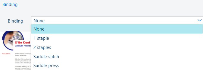 [Брошюровка]: брошюры со скрепками на сгибе. Задайте значение [Местоположение].