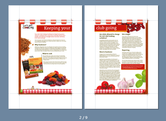 [Брошюровка со сгибом]: брошюры со скрепками и сжатым корешком. Задайте значения [Местоположение] и [Сила сгиба].