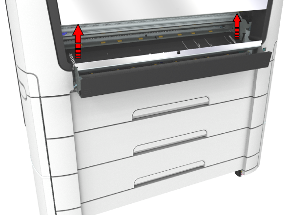 Jeśli materiału nie można łatwo usunąć, otwórz górną, tylną pokrywę za pomocą dźwigni usuwania zakleszczenia papieru, aby uzyskać dostęp do zakleszczonego materiału. Więcej informacji można znaleźć w sekcji Usuwanie zacięcia nośnika w sekcji ogrzewania).