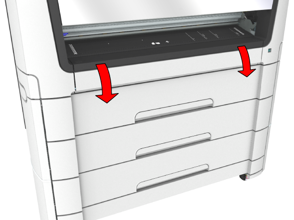 Se o material não sair facilmente, abra a tampa posterior superior com o manípulo de desencravamento de material para aceder ao material encravado. Para mais informações consulte Desencravar o material da secção de aquecimento.