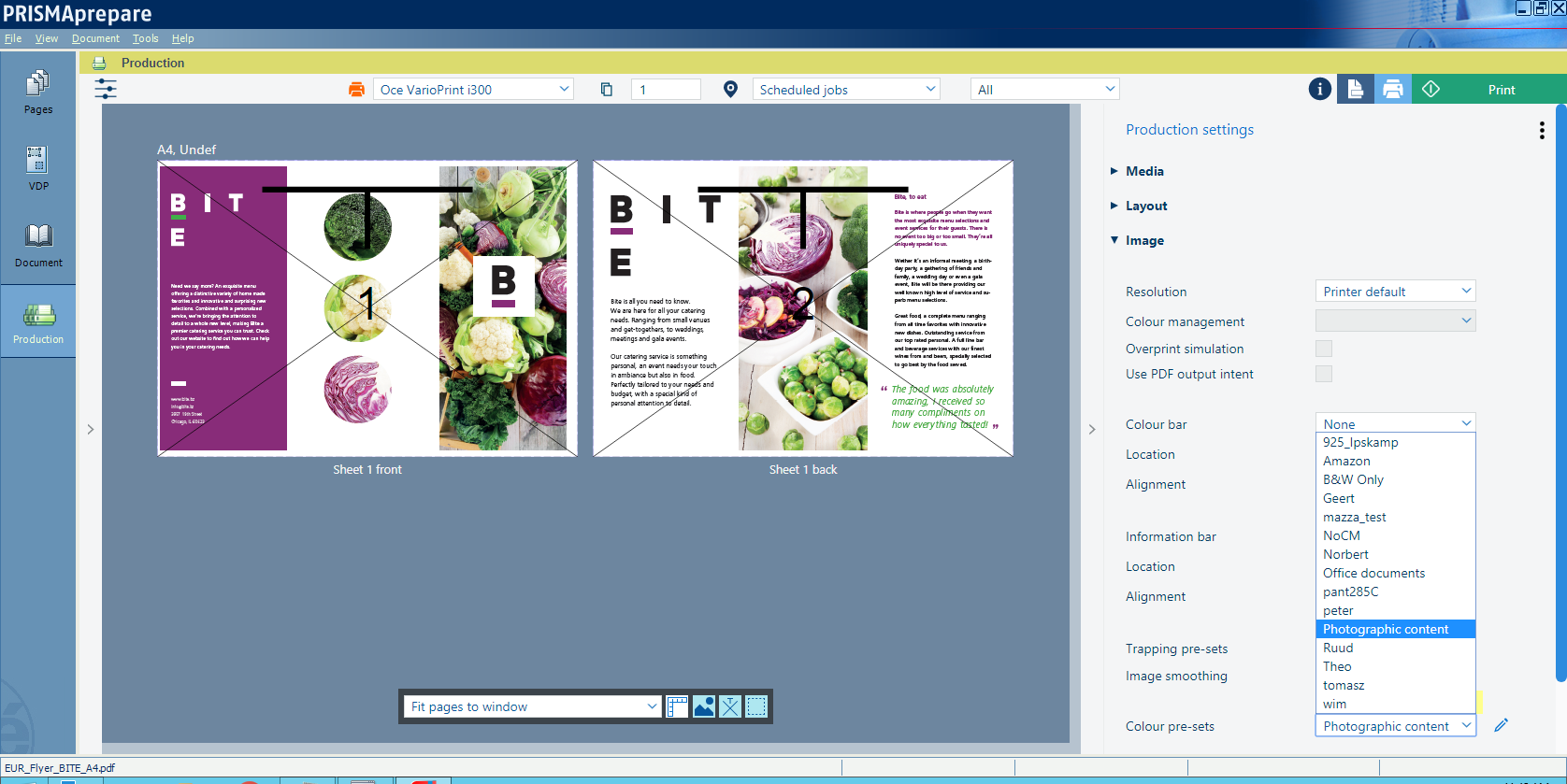 Colour pre-sets are only available in print engines with a PRISMAsync Print Server.