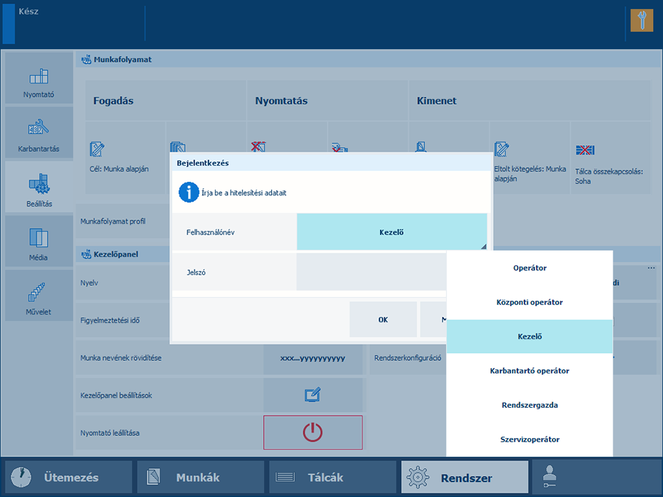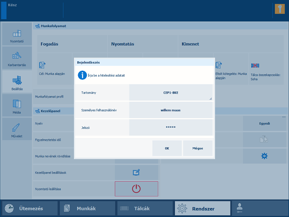 Ha gyárilag megadott felhasználói fiókot használ, a fiókot egy listából választhatja ki.