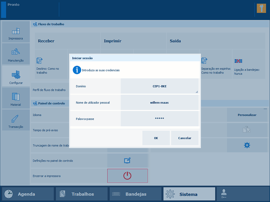 Quando utilizar uma conta de utilizador personalizada, é necessário iniciar sessão com um nome de utilizador.