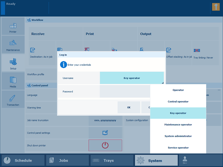 使用出厂定义的用户帐户时,可以从列表中选择用户帐户。