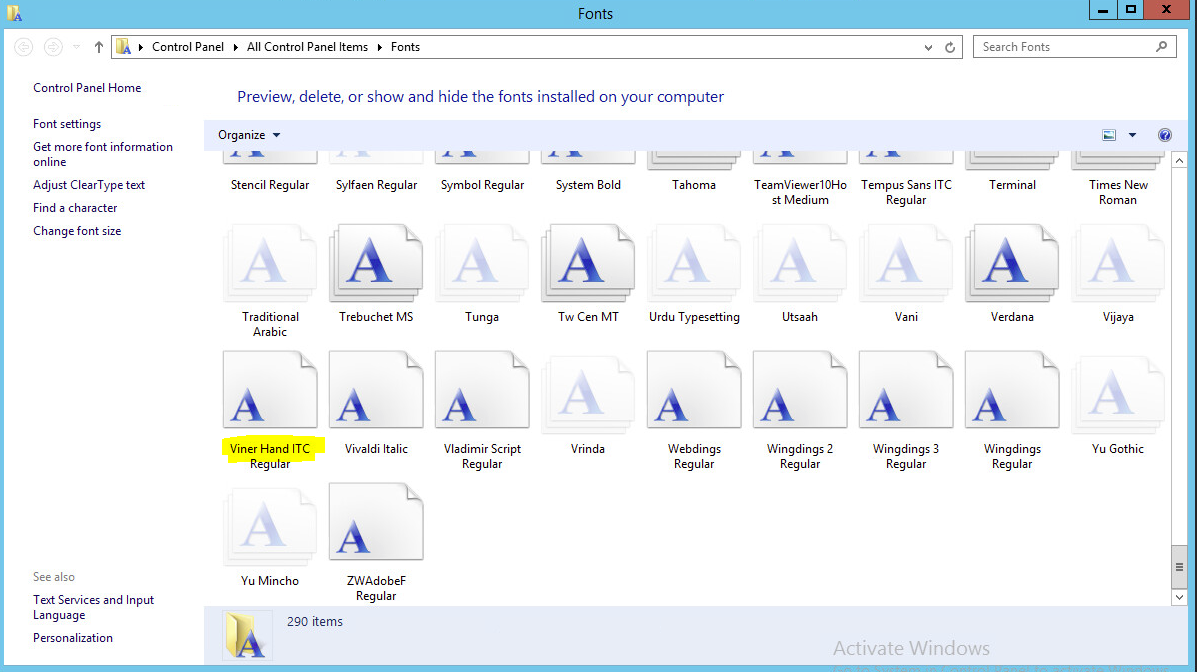 次の手順では、カスタム フォント「Viner Hand ITC Regular」を PRISMAdirect で使用可能にします。
