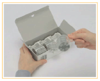Извлеките из коробки новый картридж со скрепками |