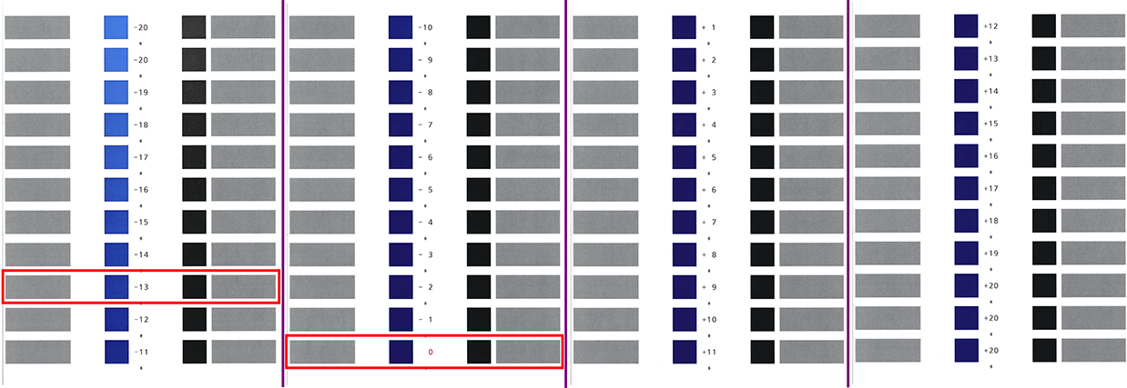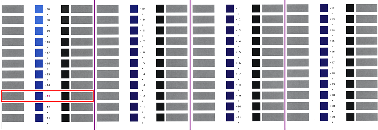 Onthoud de parameterwaarden van de patch met de beste afdrukkwaliteit. In dit voorbeeld: -13.
