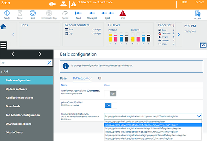 PRISMA Home 응용 프로그램에서 연속 공급 프린터를 사용하려면 PRISMA Home에서 프린터를 등록해야 합니다.