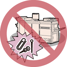 Pas på ikke at spilde væsker eller tabe fremmedlegemer som f.eks. papirclips eller hæfteklammer ned i maskinen. Hvis et fremmedlegeme kommer i kontakt med de elektriske dele i maskinen, kan det medføre kortslutning og forårsage brand eller elektrisk stød.