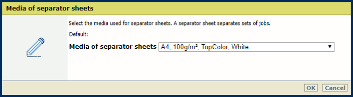 Section [Feuilles de séparation] Utilisez le paramètre [Support des feuilles de séparation] pour sélectionner le support par défaut des intercalaires.