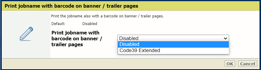 Paramètre [Imprimer le nom de travail sous la forme d’un code-barre sur les pages bannières/les pages de fin] Cliquez sur [OK].