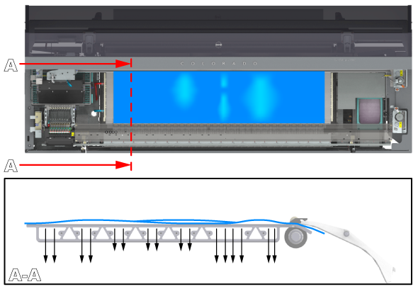Řeší dotyky média nebo artefakty kvality tisku způsobené zvlněním v médiu. Pokud je médium slabé nebo má relativně malou šířku (< 1000 mm), může být podtlakové sání příliš slabé a médium se začne pohybovat po desce prostřednictvím vlnění. Postupujte podle postupu níže. Během postupu můžete kdykoli ukončit činnost, jestliže se problém vyřeší.