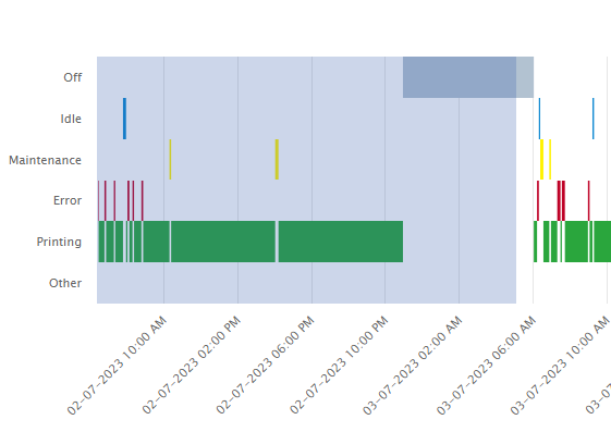 Visningen [Tidslinje] Følgende statusser overvåges og er synlige på den lodrette akse.