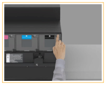 Appuyez sur le bouton de la cartouche de toner que vous voulez remplacer pour ouvrir le volet intérieur. Attendre que le volet intérieur s'ouvre automatiquement. Ne pas exercer de force pour l'ouvrir, au risque d'endommager la machine. |