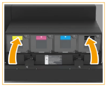 L'ordre de la cartouche de toner de gauche à droite est le suivant : jaune, magenta, cyan et noir.