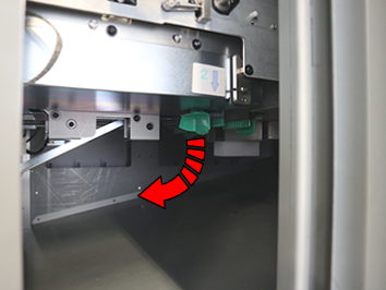 Aperte os manípulos verdes para abrir a guia de papel. |