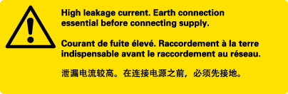 Elektřina: Vysoký únikový proud. Zařízení musí být vždy zapojeno do uzemněné síťové zásuvky. |