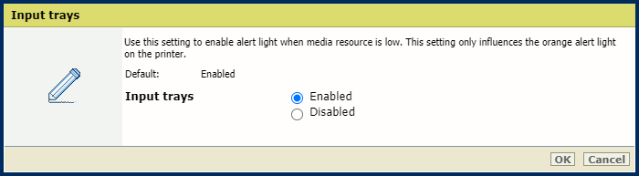 [Alert light] sectionEnable or disable the orange alert light for the following consumables and waste locations: