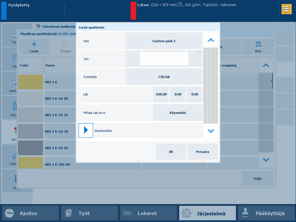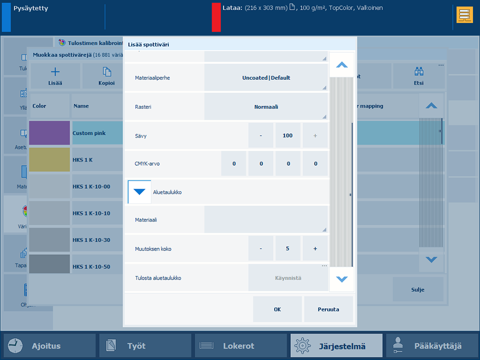 Spottivärimääritys tallennetaan mukautettuun spottivärikirjastoon.