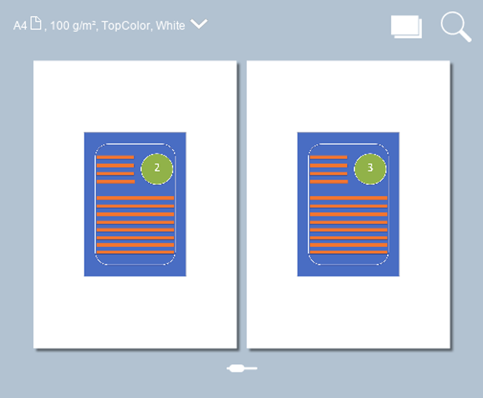 选项(“文档”视图)在 A3 介质上对 A4 文档进行拼版的示例 |