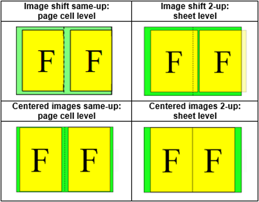 In case of same-up and booklet, the image is positioned with respect to individual page cells.
