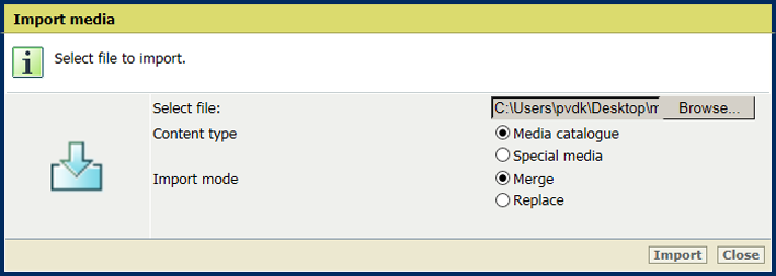 Indicate if you want to replace or expand the media catalog or special media definitions.