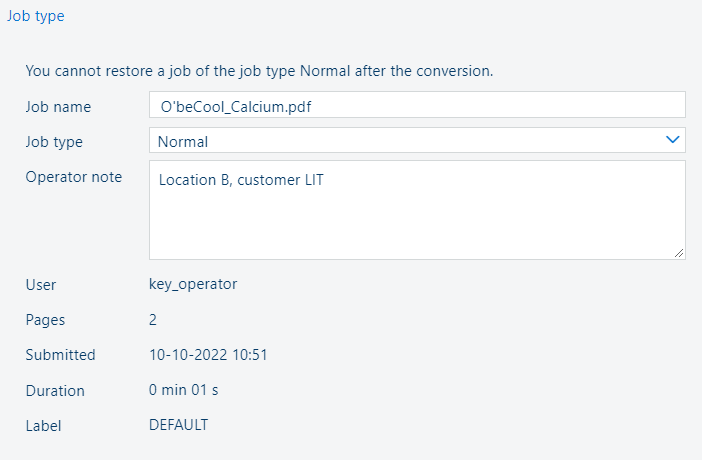 Примечание для оператора можно создать с помощью панели управления, PRISMAremote Manager и драйвера удаленного принтера. Задание, содержащее примечание, отмечается значком
