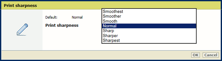 [Nyomtatási élesség] beállításA képminőség vagy a produktivitás magasabb prioritásának a beállításához használja a [Képtömörítés optimalizálás] beállítást.