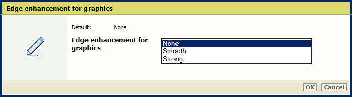 [Szegély javítás grafikához] beállításA nyomtatási élesség növeléséhez vagy csökkentéséhez használja a [Nyomtatási élesség] beállítást.