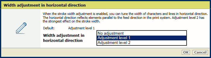 2. Utilisez le paramètre [Réglage de la largeur dans le sens horizontal] pour indiquer le réglage de la largeur des caractères et des lignes dans le sens horizontal.