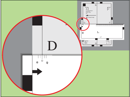 - Juster starten på linealen i forhold til venstre kant på prøvearket.