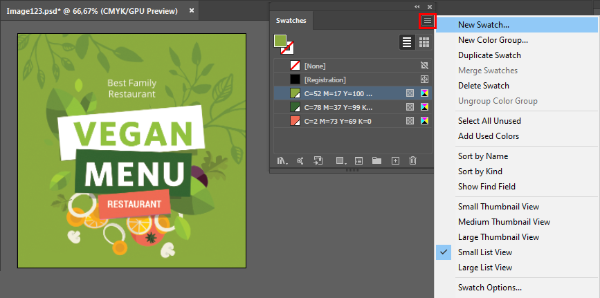 Swatch Color - Använd reglagen för att justera swatchfärgen. Du kan göra den här färgen till vilket värde som helst och som gör det lättare för dig att arbeta med i din design.
