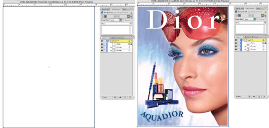 OverprintegenskaberBillederne herunder viser hvide punktdata med udskæring og overprint. I dette tilfælde er det meningen, at punktdata skal udskæres, så de ses som hvide i det endelige dokument.