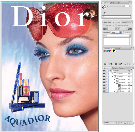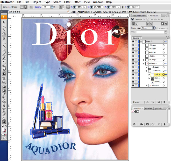 I na odwrót, można umieścić plik rastrowy w dokumencie programu Illustrator i utworzyć dane dodatkowego koloru w programie Illustrator za pomocą narzędzi do tworzenia ścieżek. Utwórz ścieżkę korzystając z danych jako wskazówki, a po utworzeniu ścieżki wypełnij tę ścieżkę kolorem Spot 1 lub Spot 2. Ta wypełniona ścieżka powinna być umieszczona nad obrazem na palecie warstw. W tym szczególnym przypadku złożoność ścieżki opcji wyboru może dyktować jej tworzenie w programie PhotoShop, a program Illustrator może być lepiej wykorzystany do prostszych obiektów.