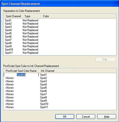 3. 在 Preflight 中打开文件并访问 Color Management [颜色管理]/Edit Profiles [编辑配置文件] 选项卡。 单击 Spot Channel Replacement [专色通道替换] 框。