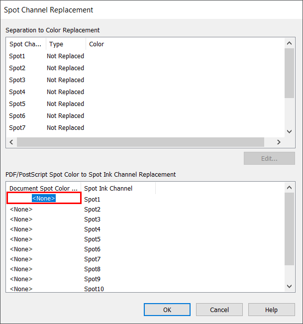 Om du vill använda olika namn för vita data eller data för lack/glans kan du ändra Spot-kanalernas namn till det namn som du föredrar.